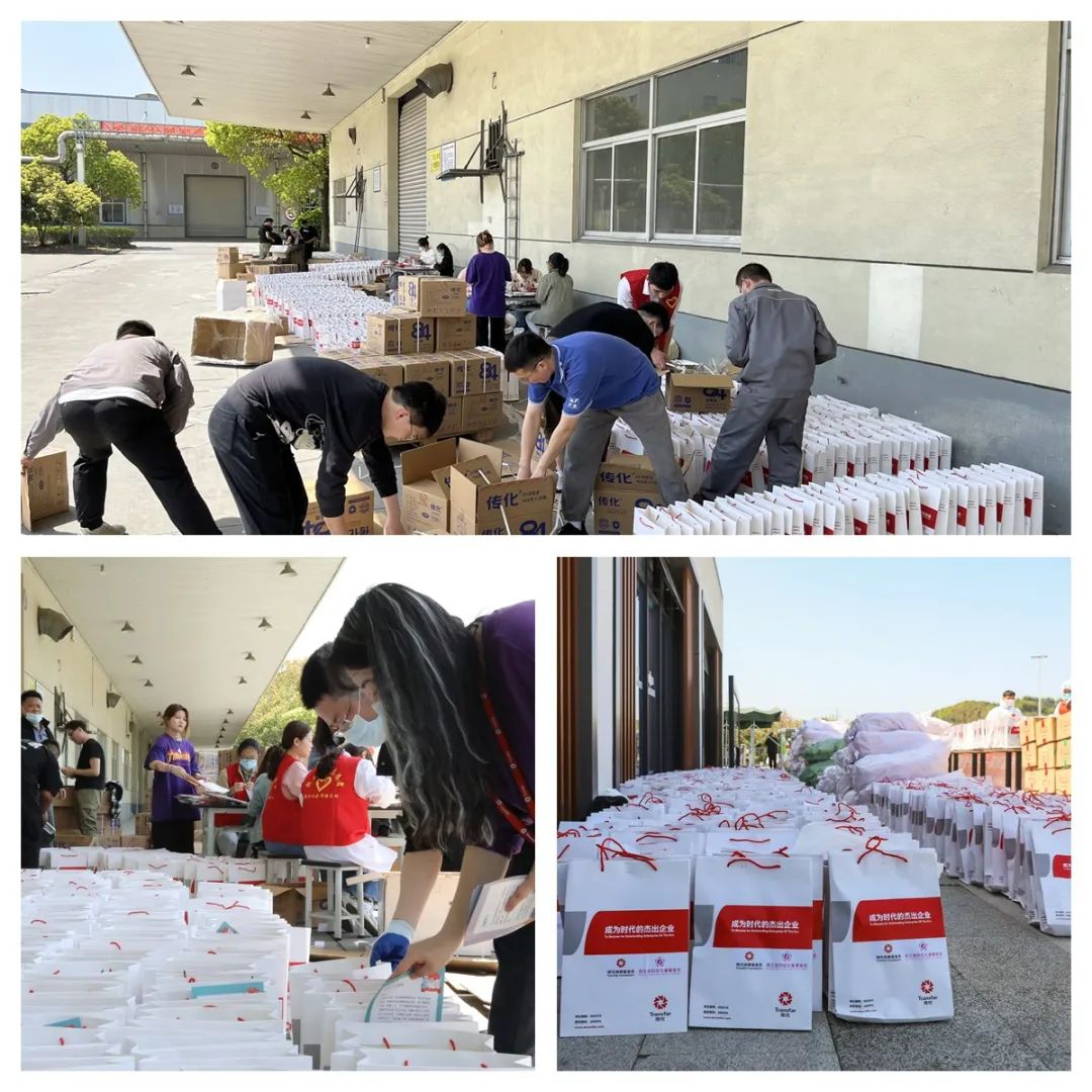 传化化学集团党群突击队分装打包防疫物资爱心包